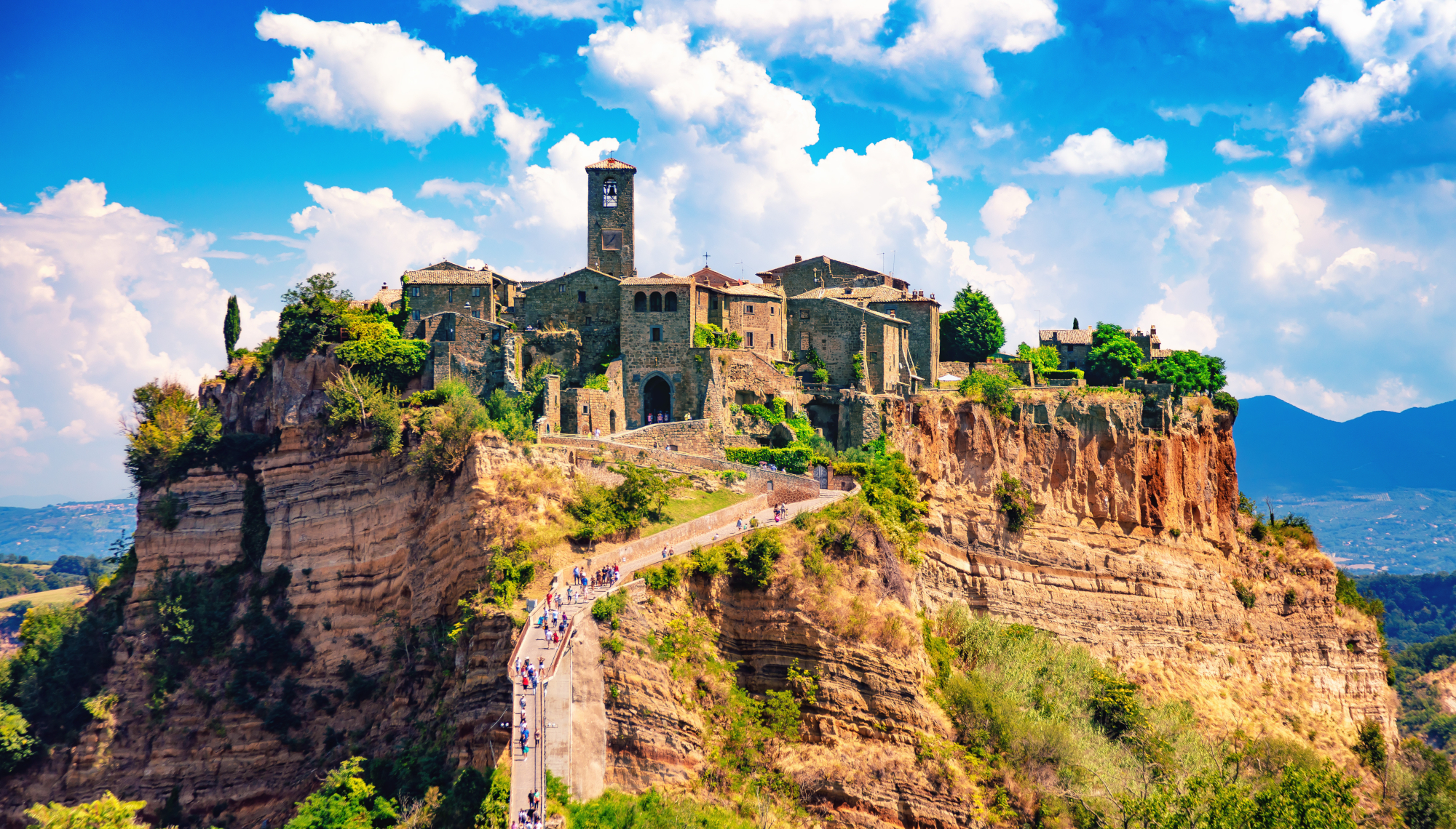 Nous partons à la rencontre de cette civilisation captivante qui aura tant marqué les Romains. D’eux, ils apprendront l’art divinatoire des « haruspices », la pratique de l’incinération mais aussi des techniques de construction. Ce peuple qui a fondé les plus anciennes cités de la péninsule italienne, nous a laissé de nombreuses nécropoles. Cette civilisation marquée par les plaisirs des banquets, par une foi puissante peuplée de dieux étranges, marquera aussi les esprits de la Renaissance avec la réalisation de l’extraordinaire « Bosco Sacro » de Bomarzo. Cette région, aux confins du Grand Duché de Toscane et des Terres papales, verra s’ériger de nombreux villages fortifiés, perchés sur d’incroyables falaises, tels Pitigliano ou Sorano, tous classés « plus beaux villages d’Italie ».
