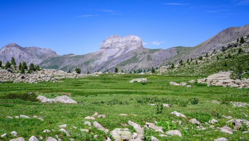 Recours - Rabioux. Direction le col du Vallon de l'Aup et le col du Lauteret puis descente jusqu'à la Cluse en Dévoluy à travers les pâturages d'altitude. Arrivée à Rabioux en longeant le pierrier de la montagne d'Aurouze.