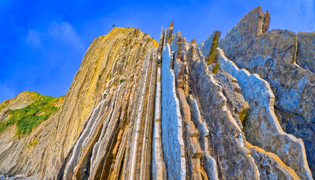Au départ de Zumaïa, les falaises d'Algorri introduisent notre traversée jusqu'à Deba : plages, criques, falaises, prairies... Une côte sauvage dépourvue d'habitations aux formes géologiques exceptionnelles, crées par l'addition de sédiments sous la mer, il y a plusieurs millions d'années. Cette zone, le flysch de Zumaïa, est protégée depuis 2009 par l'UNESCO au titre de Géoparc, et constitue un véritable trésor naturel. Transfert à Elantxobe.