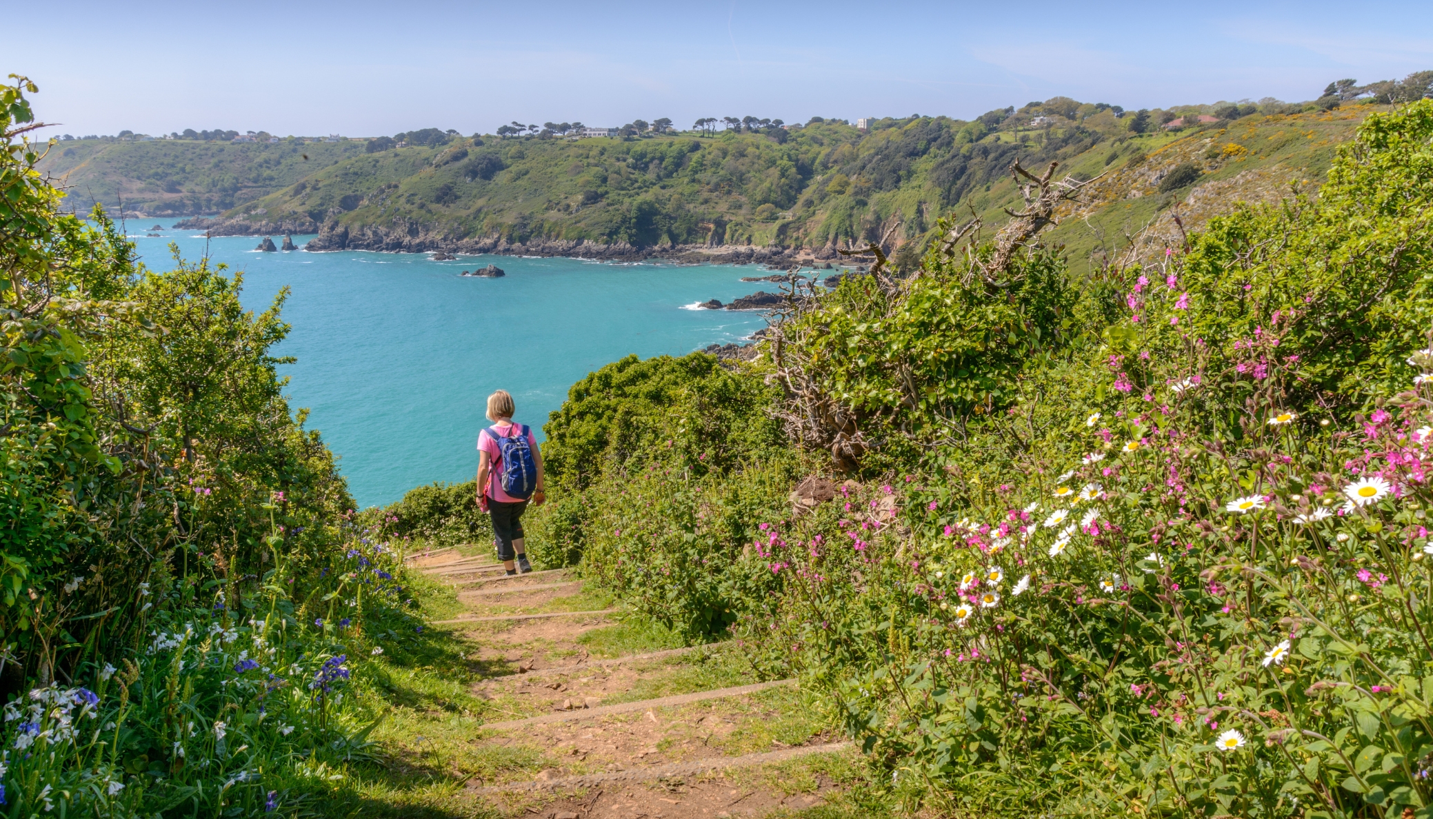 Cheminement le long de la côte sud de Guernesey depuis Jerbourg Point en direction de la pointe de Pleinmont. Randonnée grandiose : Moulin Huet Bay, pointe de la Moye. Dîner à la guest house.