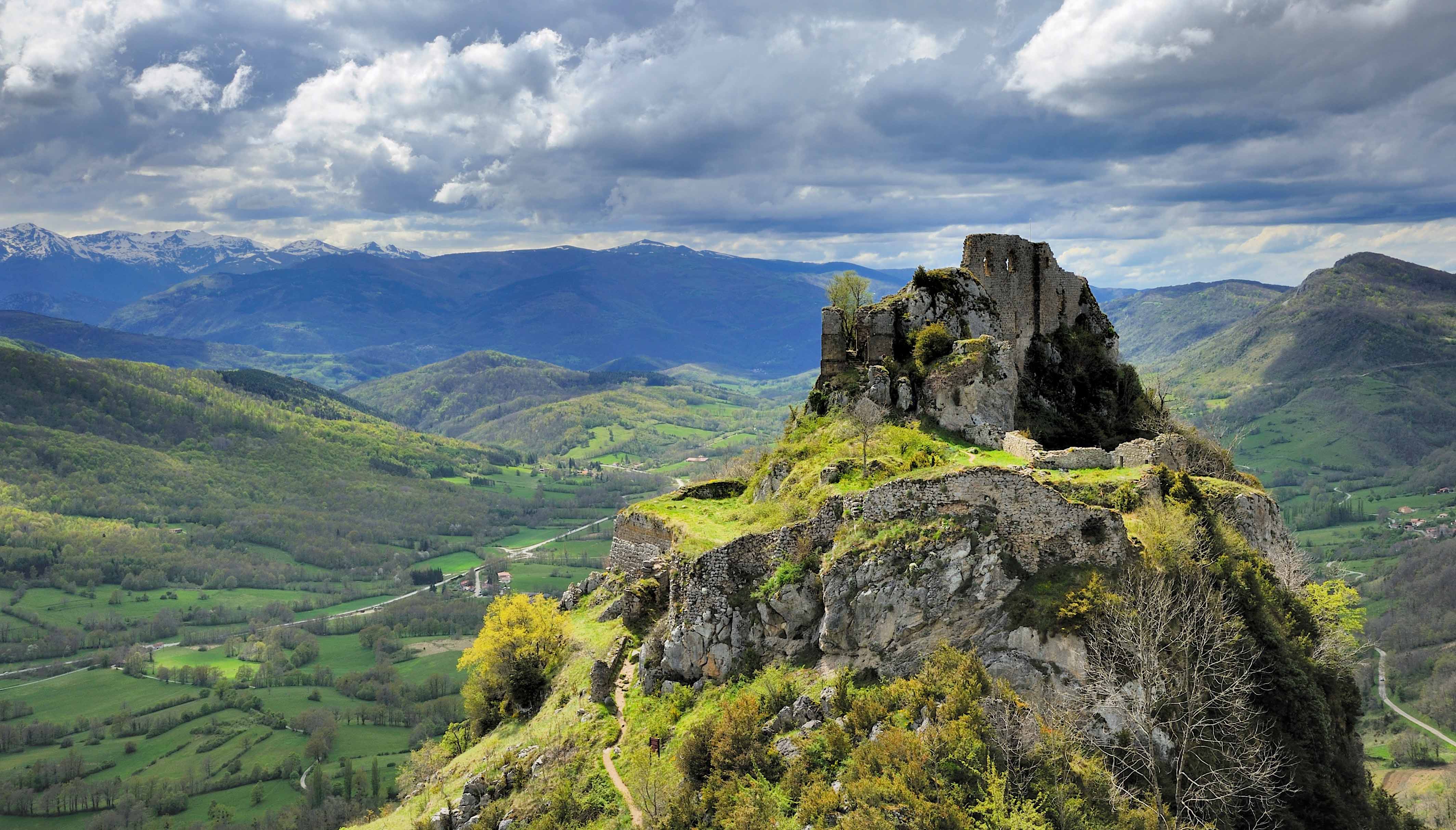 Belle et agréable randonnée dans les Gorges de Péreille entre roches, prés et forêts. Puis, depuis le village de Roquefixade, courte montée jusqu'au château de Roquefixade, la "roche fendue", construit sur une faille enjambée littéralement une de ses voûtes. Superbes panoramas sur la ligne de montagnes des Pyrénées ariégeoises. Retour à la cité des comtes de Foix, capitale de l'Ariège. Visite du château et nuit en hôtel à Foix.