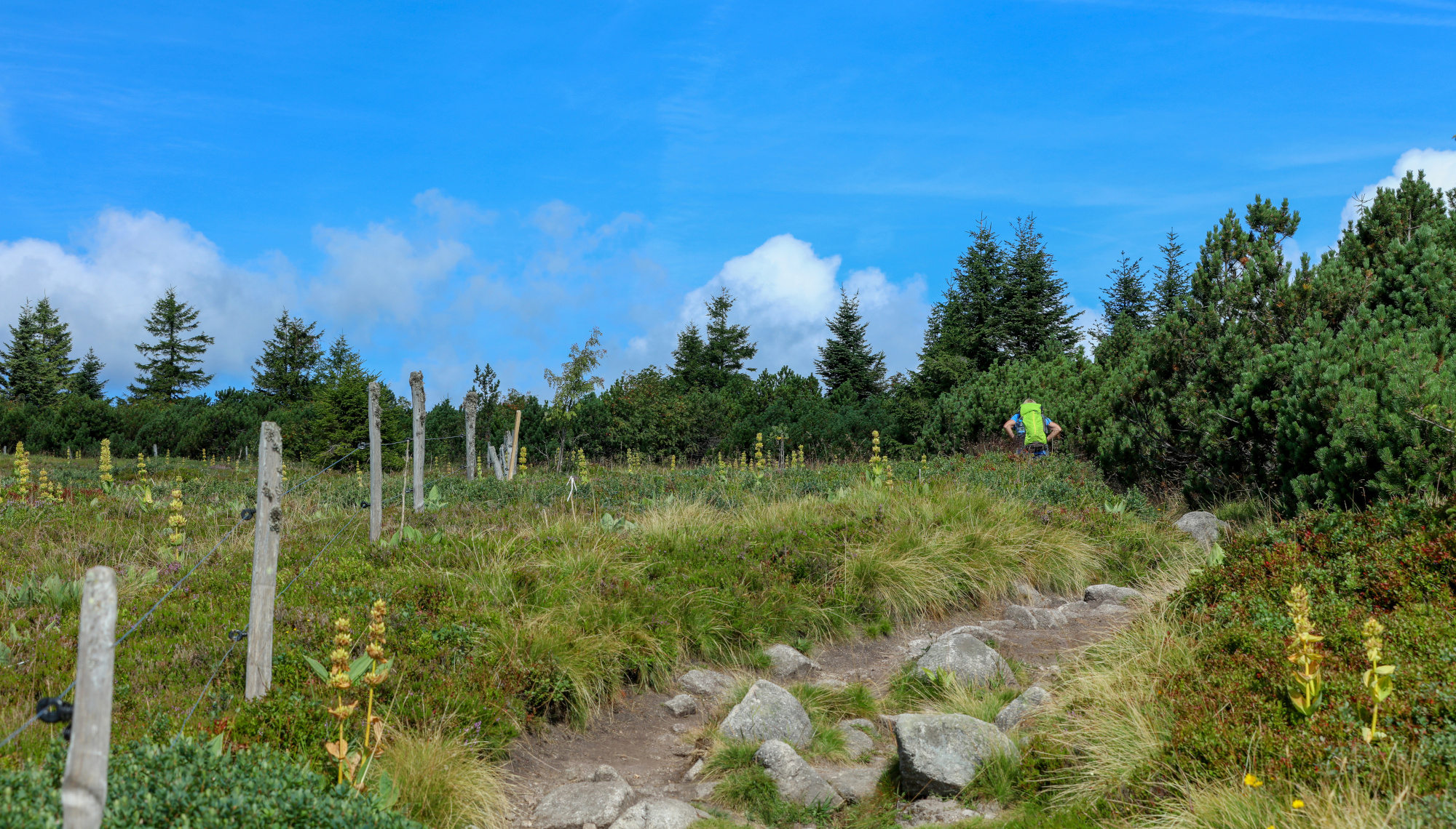 Nous débutons la journée par un transfert sur Labaroche. Nous entamons ensuite le GR532 pour un parcours en crête au-dessus de la vallée de Munster d'où nous profitons de très belles vues sur le Hohneck et le grand Ballon. Nous contournons le Petit et le Grand Hohnack pour arriver au Collet du Linge. Pour cette belle journée de rando, nous admirons de grands points de vue sur l’ensemble des Vosges et de L’Alsace.