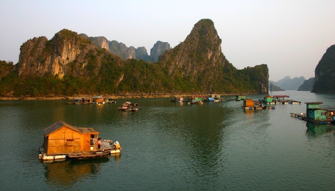 Levé de soleil dans la baie d’Along qui ne laisse personne indifférent... Croisière dans la Baie jusqu'au début d'après-midi. Baignade possible. Route pour la Moyenne région. Train de nuit pour Hué.