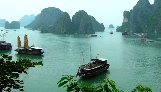 Poursuite de la route pour la Baie d'Halong, pour une immersion totale... Embarquement en jonque pour une croisière dans la baie, l'un des grands sites classés au patrimoine mondial, dans sa partie la moins fréquentée. Nuit à bord du bateau ou au bord de la baie.